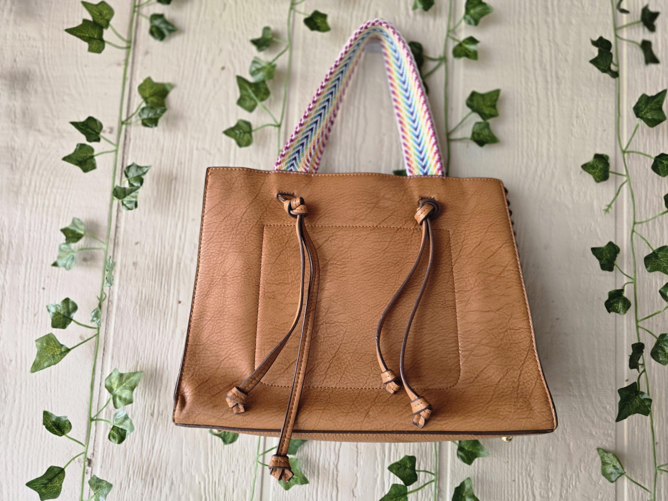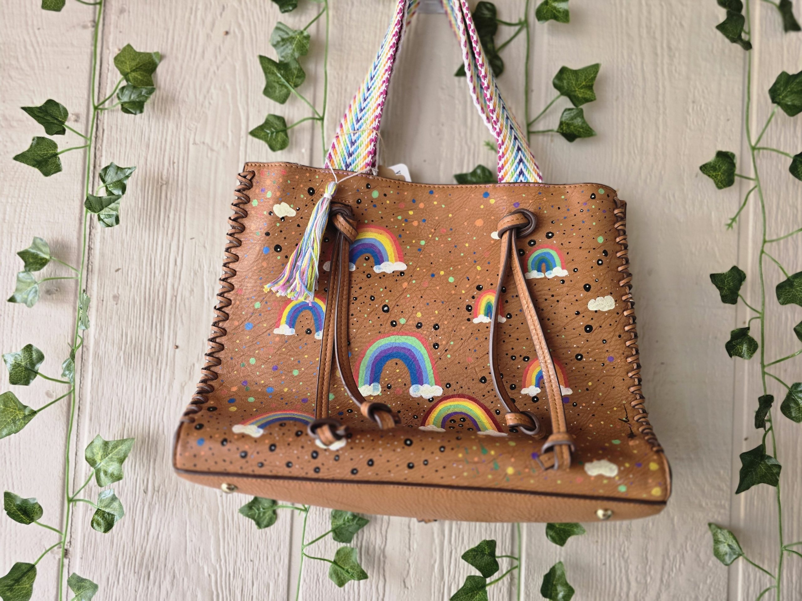 Make a trip over the rainbow with this beautiful charming-charlie bag handpainted.
